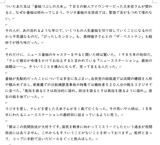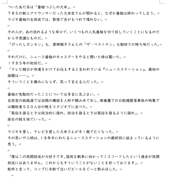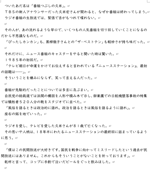 『天声人語』も、この「短い・読みやすい一文」が連続して一つの文章になっているのです。